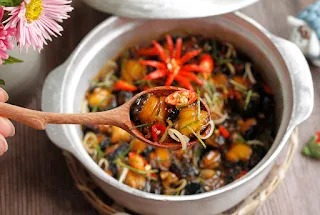 Ốc bươu vàng kho sả ớt dậy mùi thơm đặc trưng của sả, ốc bươu vàng giòn sần sật, vị mặn ngọt cay hài hòa, ăn cùng cơm trắng rất ngon.